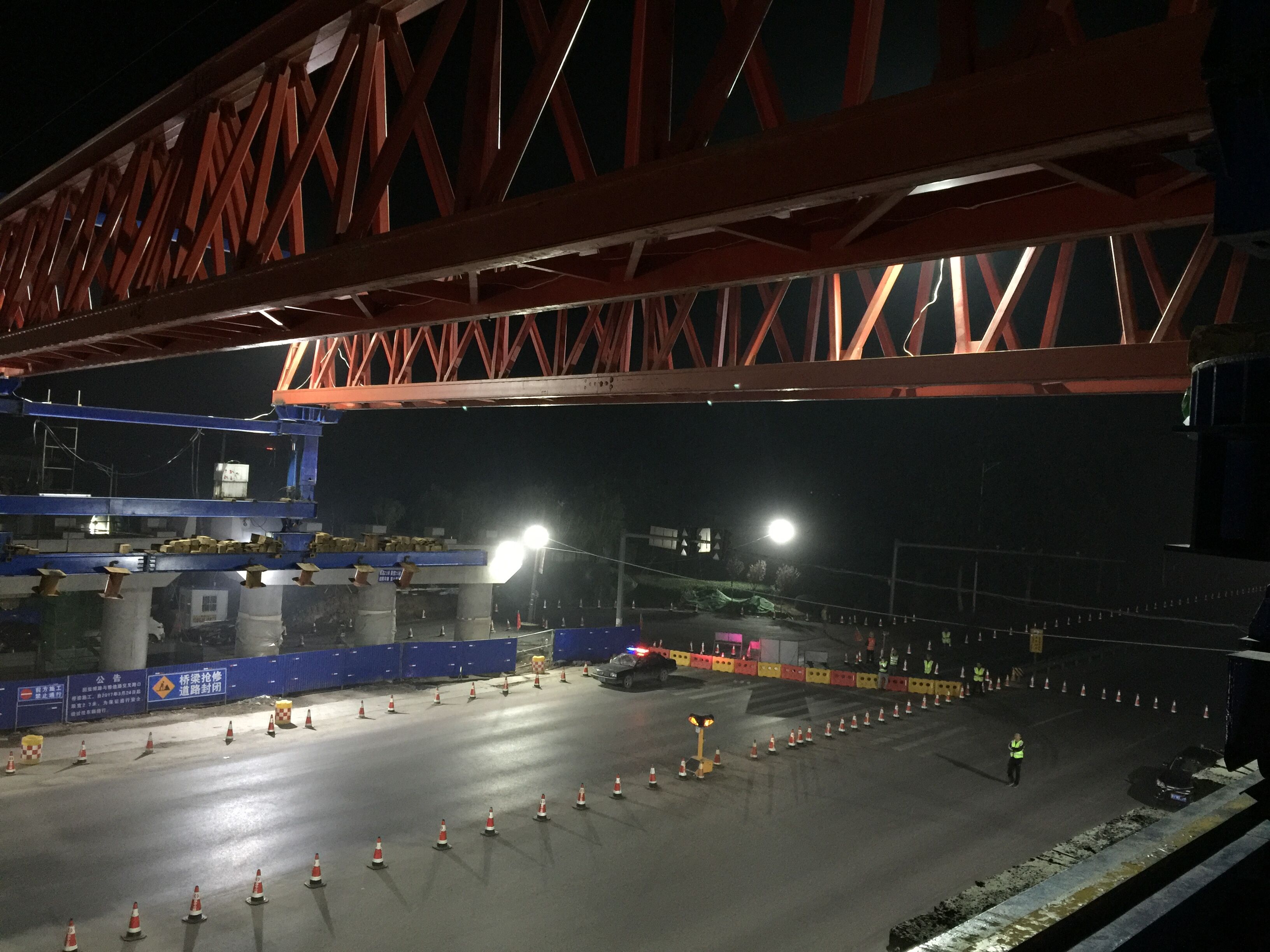 5月20日起淄博市公路管理局、總監(jiān)處、公司領(lǐng)導(dǎo)都高度重視跨張博路40米箱梁吊裝安全問(wèn)題,公路局、總監(jiān)處、公司基地及橋隧工程分公司領(lǐng)導(dǎo)都輪流值班盯控。箱梁吊裝安全主要包括張博路交通安全及架橋機(jī)施工安全,由于張博路交通量大,所以交通安全刻不容緩。根據(jù)交通組織方案內(nèi)容,凌晨0點(diǎn)—凌晨5點(diǎn)進(jìn)行張博路交通封閉,改路道臨時(shí)便道。業(yè)務(wù)二部經(jīng)理周勇勇全面負(fù)責(zé)箱梁吊裝及交通安全工作;業(yè)務(wù)二部總工黎正新領(lǐng)導(dǎo)交通安全一隊(duì)主要張博路往張店方向標(biāo)志、標(biāo)牌、安全設(shè)施、反光錐擺放,交通安全及吊梁安全工作;業(yè)務(wù)二部工程部部長(zhǎng)李杭岳領(lǐng)導(dǎo)交通安全二隊(duì)主要張博路往博山方向標(biāo)志、標(biāo)牌、安全設(shè)施、反光錐擺放,交通安全及吊梁安全工作。業(yè)務(wù)二部員工在交通封閉期間全部堅(jiān)守崗位,無(wú)論是從后勤方面、施工層面還是安全側(cè)面都要時(shí)刻保證吊裝及交通安全。通過(guò)幾天的進(jìn)程,上跨張博路箱梁吊裝工作已經(jīng)步入正軌,各級(jí)領(lǐng)導(dǎo)及全體業(yè)務(wù)部人員共同期待上跨張博路貫通時(shí)刻。