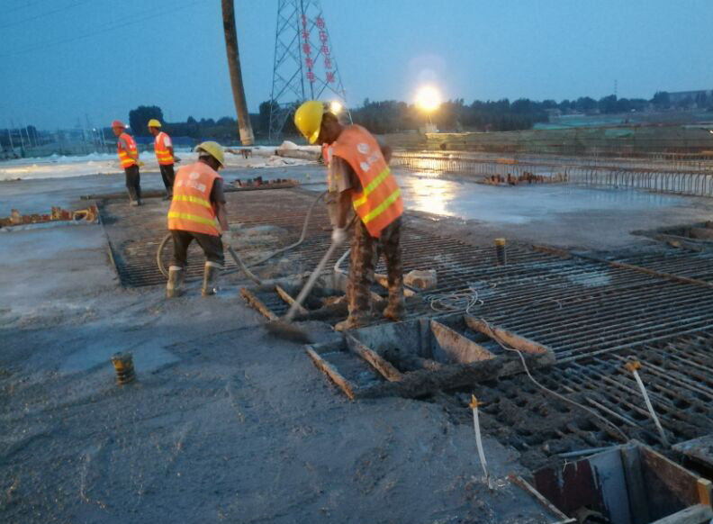 6月19日凌晨4:30分,澆筑工作進(jìn)入尾聲