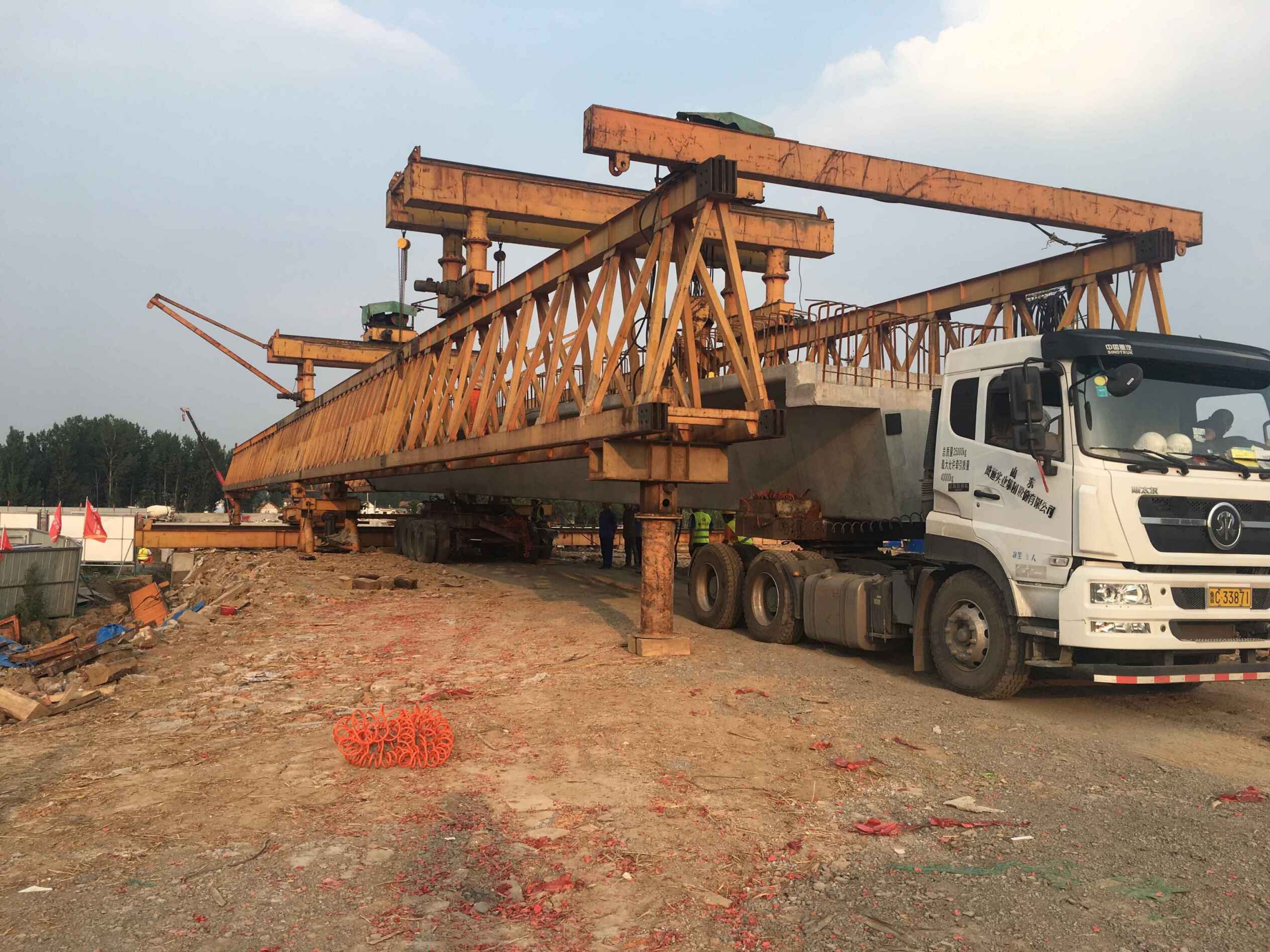 為確保架梁施工安全,項(xiàng)目部精心制定施工方案。同時(shí),在架梁機(jī)械驗(yàn)收合格后多次對其進(jìn)行檢查,對作業(yè)人員進(jìn)行班前教育,做好交底,制定應(yīng)急預(yù)案,保證了整個(gè)架梁過程安全、高效。隨著架梁設(shè)備有節(jié)奏的完成一項(xiàng)項(xiàng)動作,襯墊、落勾、試吊、起吊、推進(jìn),在一串協(xié)調(diào)而又連貫的運(yùn)作之后,人民路延伸工程孝婦河橋第一片梁板穩(wěn)穩(wěn)降落在它發(fā)揮作用的位置上。