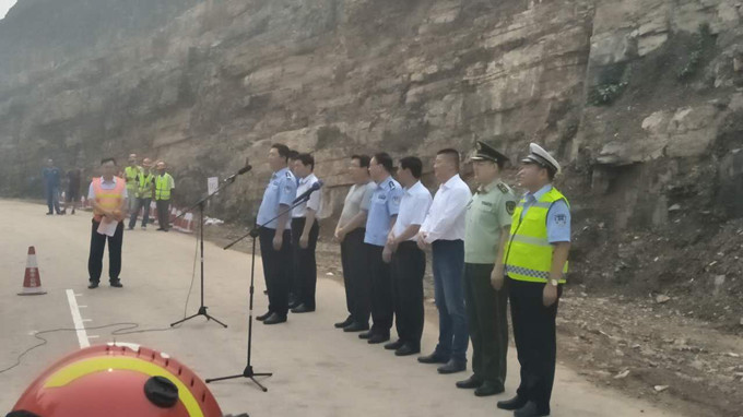 演練從路人發(fā)現(xiàn)險(xiǎn)情并報(bào)警開始,值班人員立即匯報(bào)值班領(lǐng)導(dǎo)及縣應(yīng)急辦,并確定啟動(dòng)II級(jí)應(yīng)急響應(yīng),機(jī)安科、路政科、養(yǎng)護(hù)科分別發(fā)布II級(jí)響應(yīng)指令通知各救援部門并攜帶應(yīng)急救援物資趕赴現(xiàn)場。搶險(xiǎn)過程包括搶救傷員、清理塌方、邊坡防護(hù)、恢復(fù)路況等幾個(gè)方面。演練邀請(qǐng)并得到了縣應(yīng)急辦、縣國土局、縣交警大隊(duì)、縣消防大隊(duì)、鎮(zhèn)衛(wèi)生院等部門的大力支持,同時(shí)邀請(qǐng)到了沂源電視臺(tái)全程進(jìn)行宣傳報(bào)道。