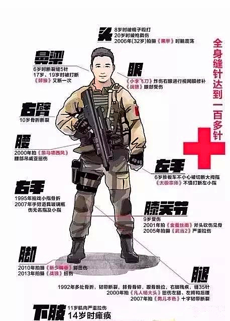 現(xiàn)在他開始將重心定位在軍旅題材,為此特意到部隊中訓(xùn)練18個月潛水、跳傘、射擊格斗、野外生存......甚至為了拍戲表演更加真實還學(xué)習(xí)坦克駕駛,誓將自己打造成為合格的戰(zhàn)士。在拍攝《戰(zhàn)狼》的一個跳海鏡頭時,他連跳26次,拍攝中差點窒息。對于意外受傷,吳京始終認(rèn)為是動作演員的基本工作,他從不炫耀,而且每次都特要面兒的說:“如果你一定要說,我覺得,那就是我的底線,要高于你的理想。”