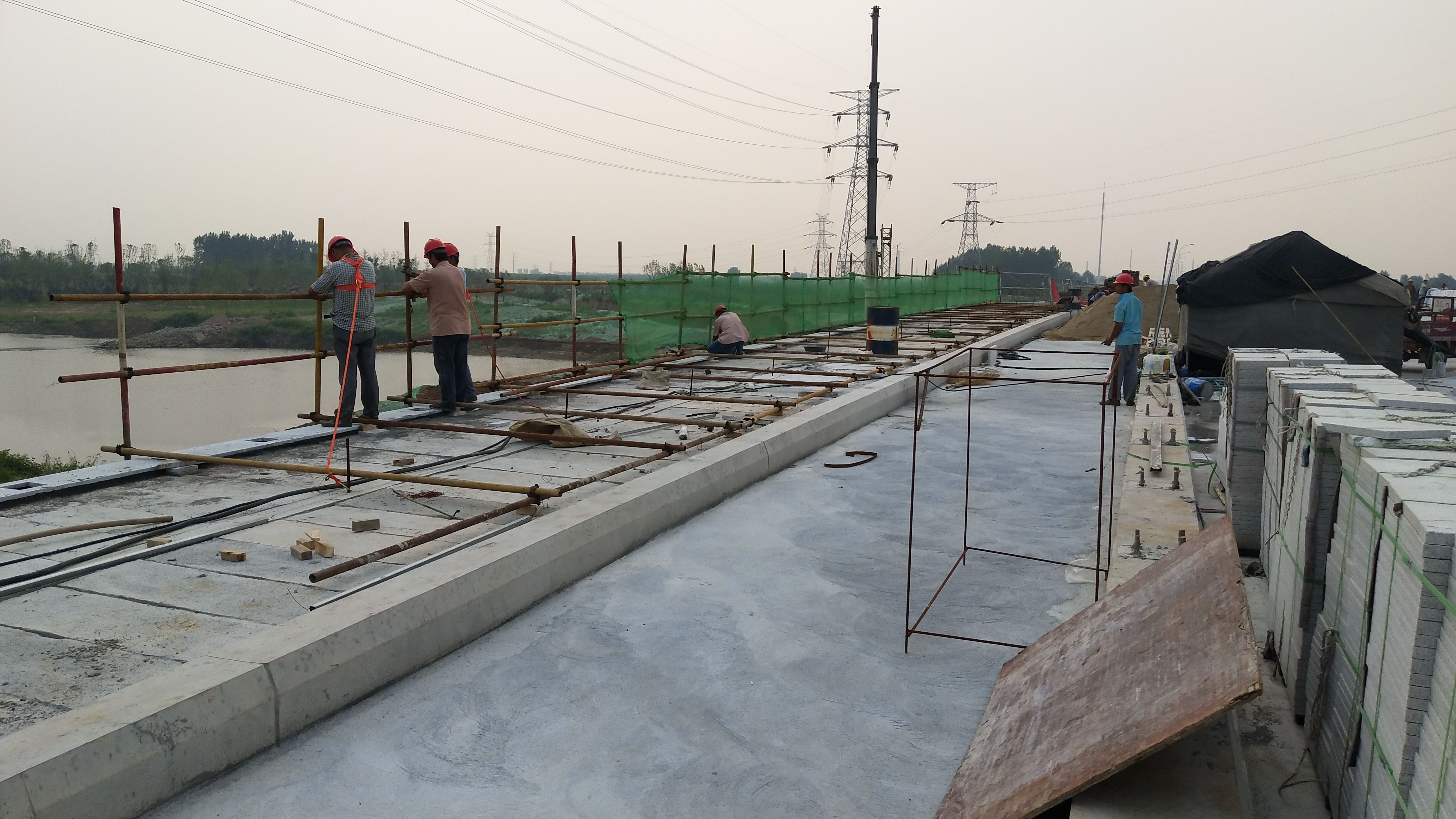 2016年6月29日,馬南路孝婦河橋第一棵樁基灌注完成,至2017年8月14日,已施工407天,下部結(jié)構、現(xiàn)澆箱梁、橋面護欄、人行道梁、人行道板、橋面鋪裝等工作全部完成,目前正在進行人行道石護欄安裝、人行道火燒板鋪設、臺背回填等工作。