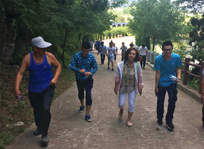 2017年8月27日12點,由唐師傅駕駛面包車從沂源張家坡開始沿路接上各項目部員工,沿著插滿標有“山東魯中公路”紅旗的剛剛竣工的由我公司施工的南崔路直達目的地:沂源燕崖。