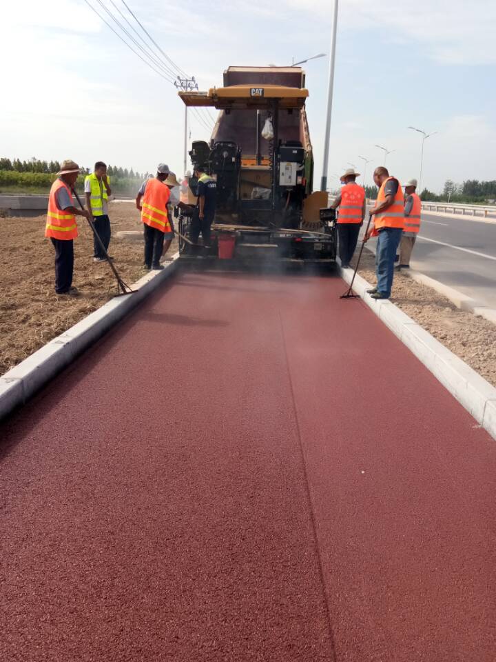 加寬段彩色瀝青單幅長約6km,路面寬度3m,2cm厚,工程量雖小,但是意義很重要,此次施工刷新了我部在彩色瀝青施工上的空白。從無到有,就是進步的時刻,就是生產(chǎn)能力的提升。針對新領(lǐng)域的嘗試,我們充滿自信,從材料研究,到施工技術(shù)研究,我們形成了一套工作體系,為以后相類似的施工任務(wù)開啟了良好的開端。
