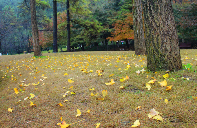 秋意漸漸地爬上了枝頭,在陣陣的秋風中,寒風無情的吞噬了那最后的一點綠。取而代之的則是一身金黃的衣裳。即將告別春花嬌艷嫵媚,夏日蟬聲嘶鳴,走完這一年生命的全程,換來無聲無息、無言的離別。待秋風一陣,與歲月共舞,如此的從容淡定,超脫奔放。