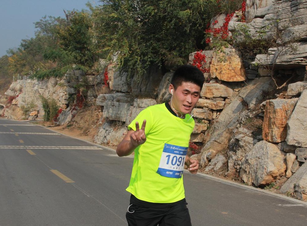 我們到達(dá)博山“五陽湖”賽場時(shí)大霧還未散盡,在完成打印報(bào)名表、領(lǐng)服裝、別號(hào)牌、換統(tǒng)一的黃T恤等一系列的賽前準(zhǔn)備后,羅漢濤和王威智進(jìn)行了簡單的熱身運(yùn)動(dòng)。