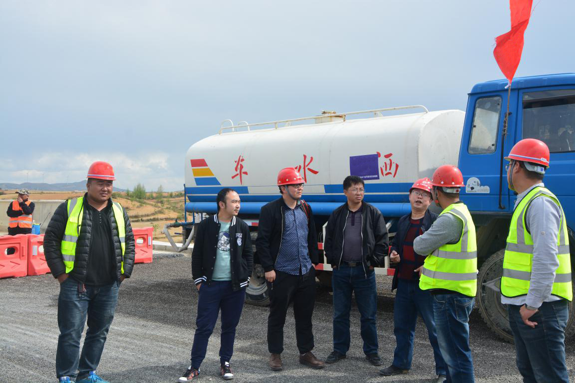 項(xiàng)目辦、管理處領(lǐng)導(dǎo)到試驗(yàn)路攤鋪現(xiàn)場督導(dǎo)工作