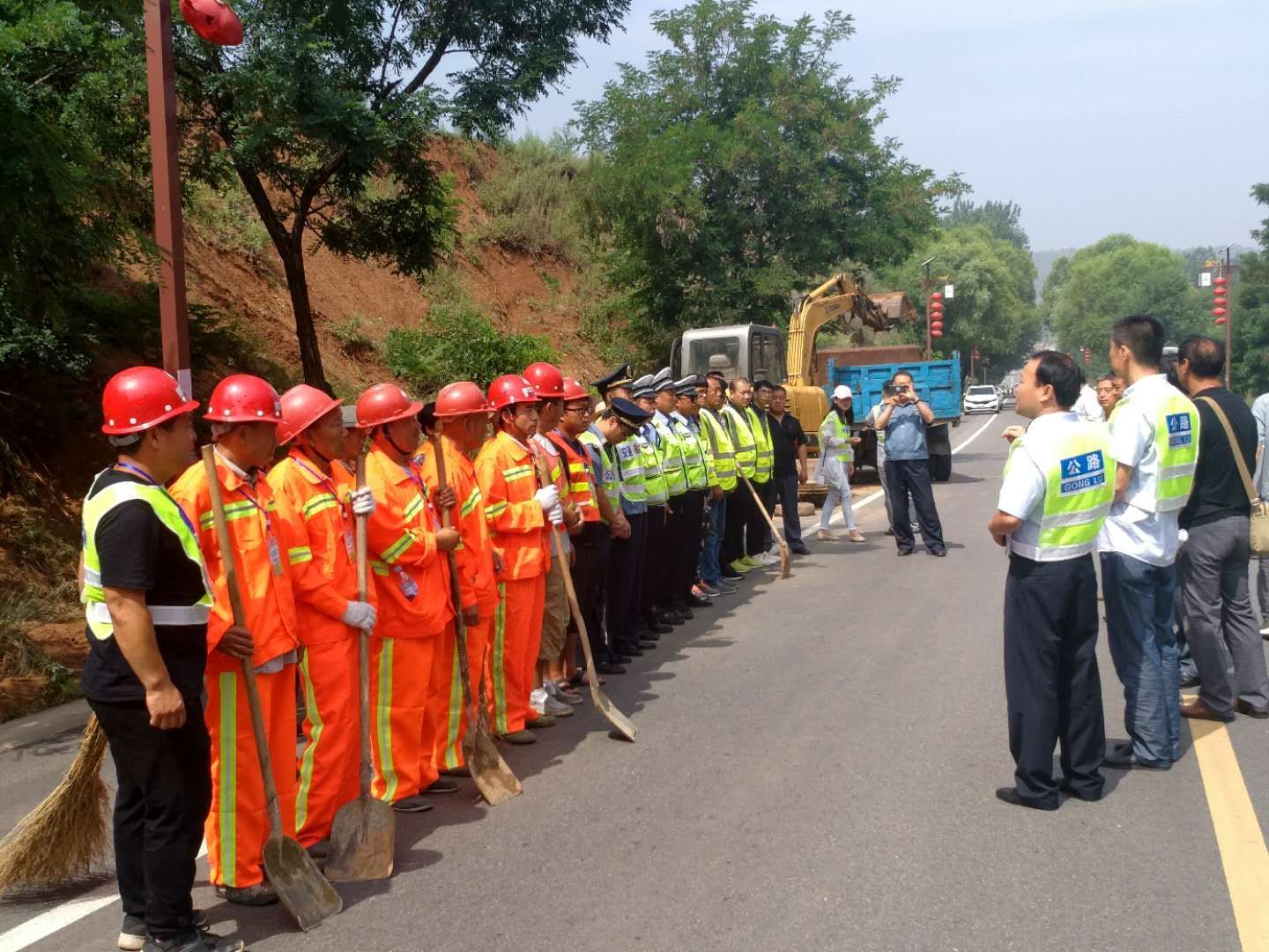 為保證此次演練的順利進行,我工區(qū)人員一清早就到工地做準備,積極出動全線養(yǎng)護員做好路面保潔工作,現(xiàn)場負責人按照公路養(yǎng)護安全作業(yè)規(guī)程提前布置好安全作業(yè)區(qū),為確保演練活動的有序開展創(chuàng)造了條件。大約9時許,各部門、作業(yè)隊應急救援小組全部到位開始演練。