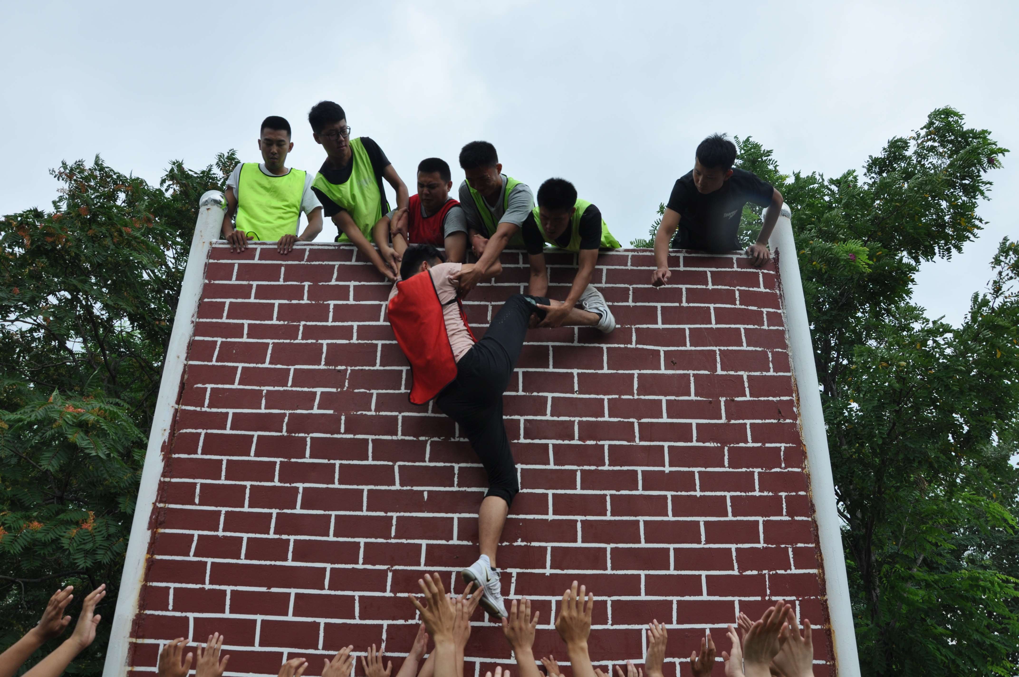 隊(duì)員們齊心協(xié)力,你托我舉,幫助隊(duì)友們一一翻越求生墻