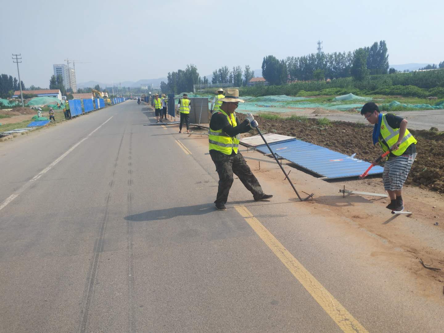 隨著施工進度的不斷推進以及上級點評日期的接近,人民路項目部制定了詳細的工作計劃,將每一項工作任務(wù)落實責(zé)任到位。項目部全體人員包括內(nèi)勤人員實施“全體總動員”行動,要求大家齊上陣,在原先已經(jīng)做好各項工作的基礎(chǔ)上,進一步對全線8.6公里的圍擋進行修整維護,并拆除、更換、張貼宣傳畫,對危險部位水馬擺放、全線垃圾清理、裸土及路基綠化帶全面覆蓋、圍擋清理等各項工作進行排查和修整,在規(guī)定時間內(nèi)全部準(zhǔn)備到位,確保人民路項目各項工作合格達標(biāo)。