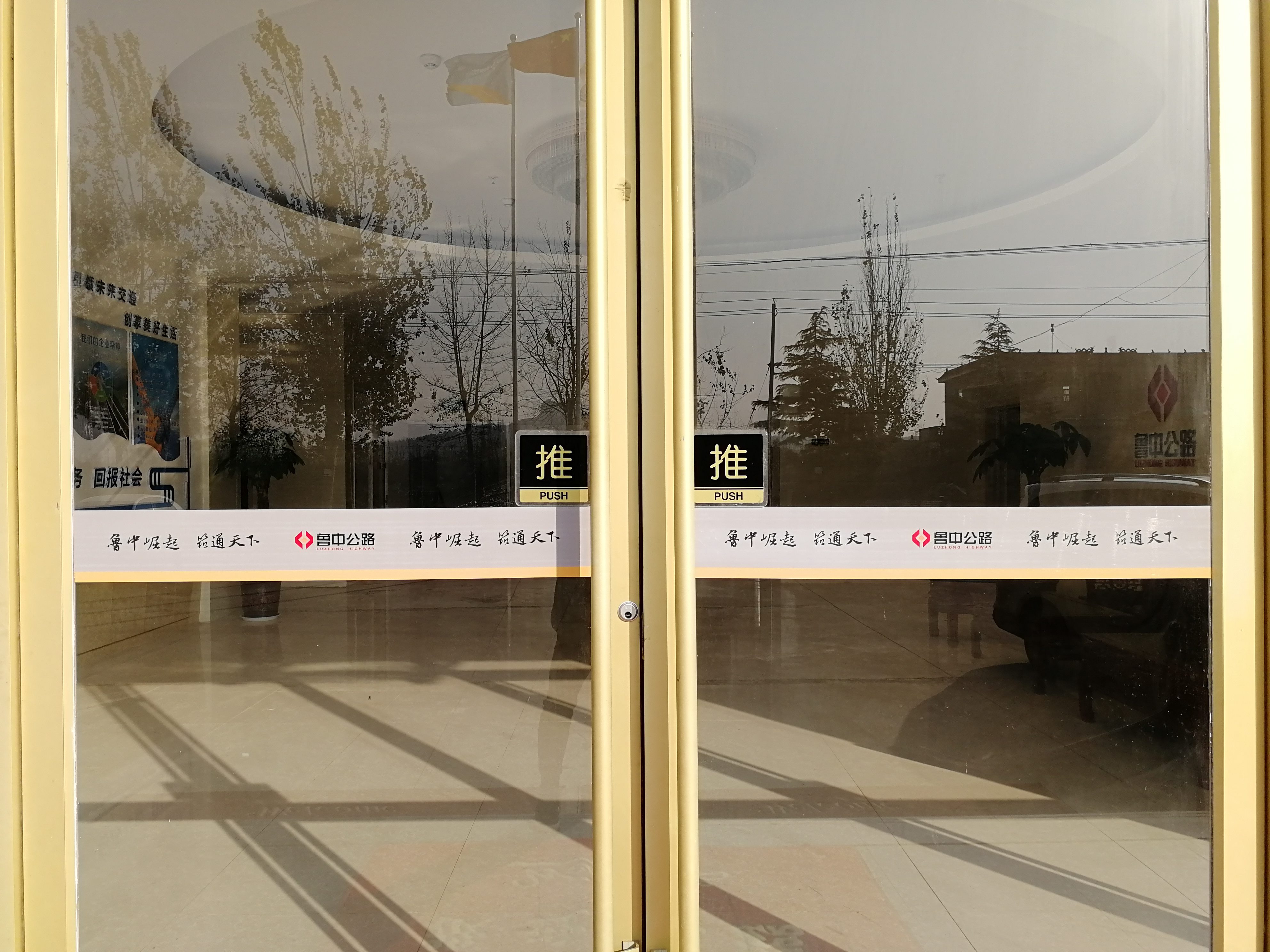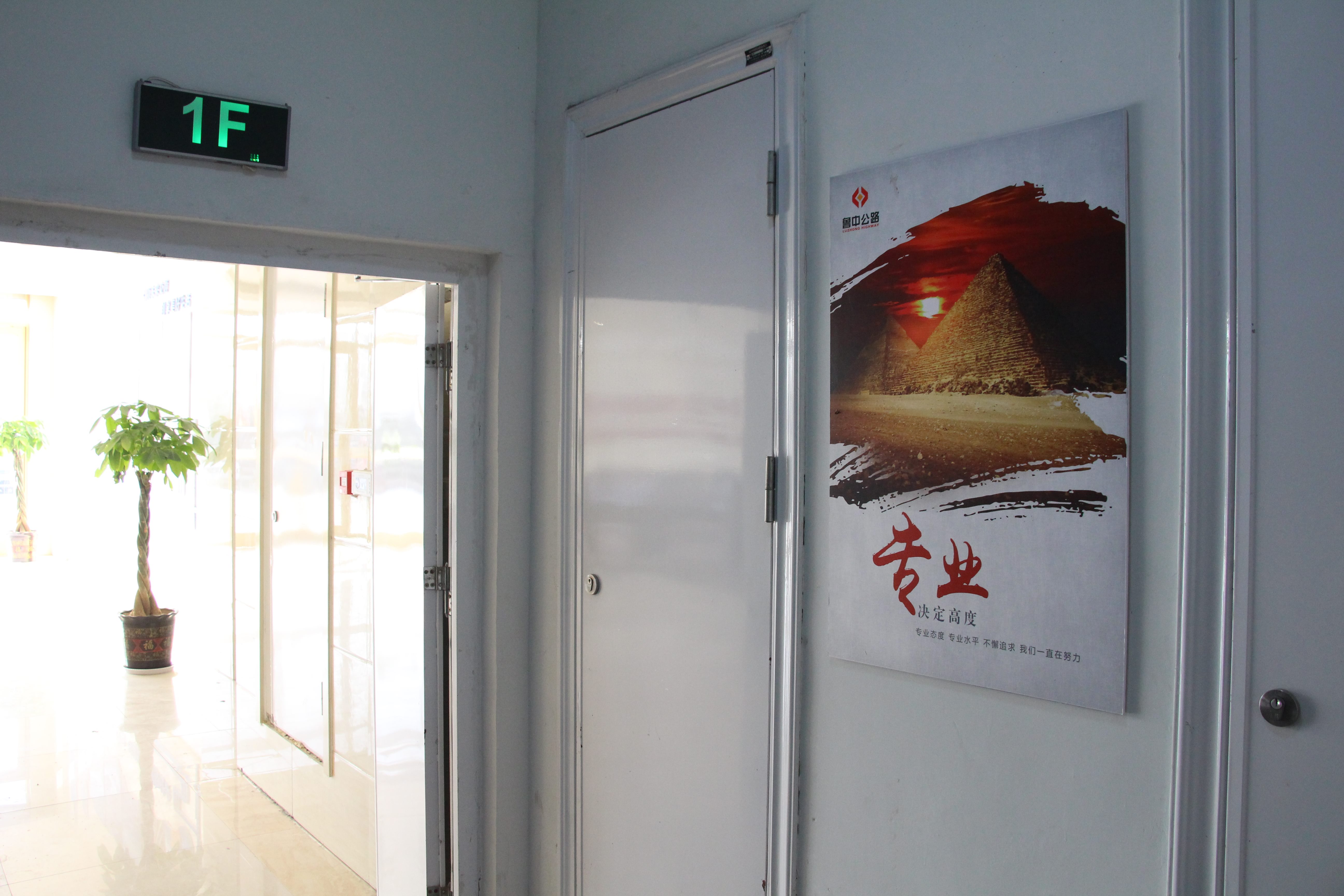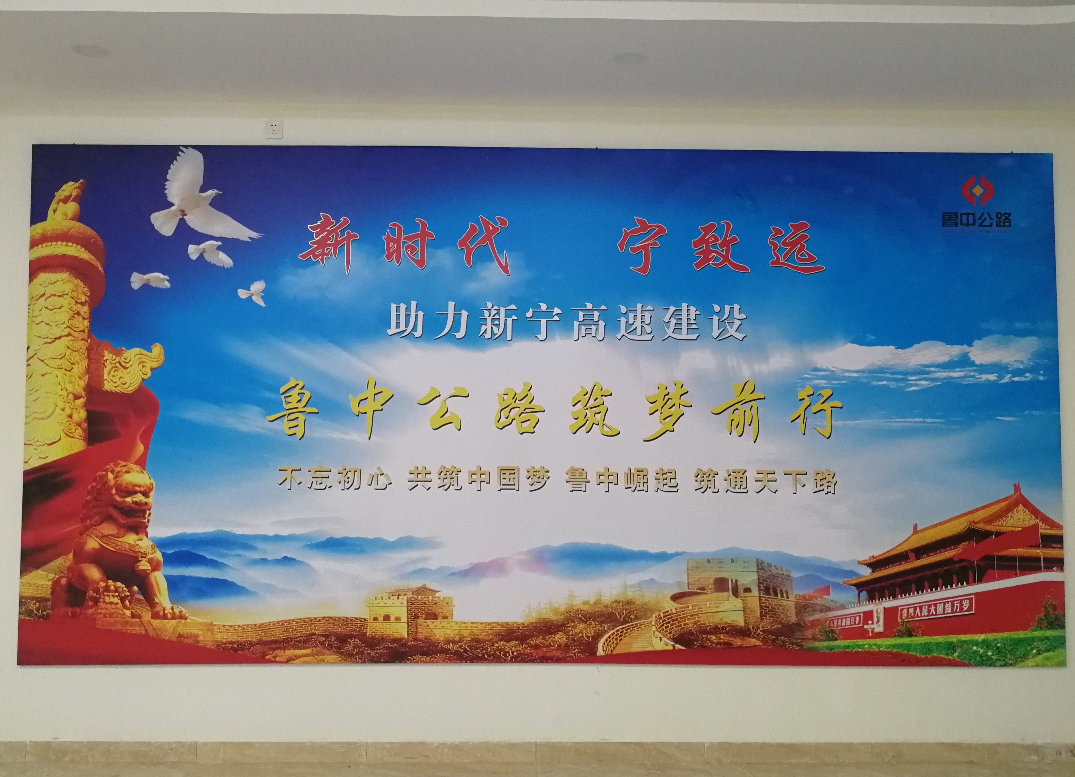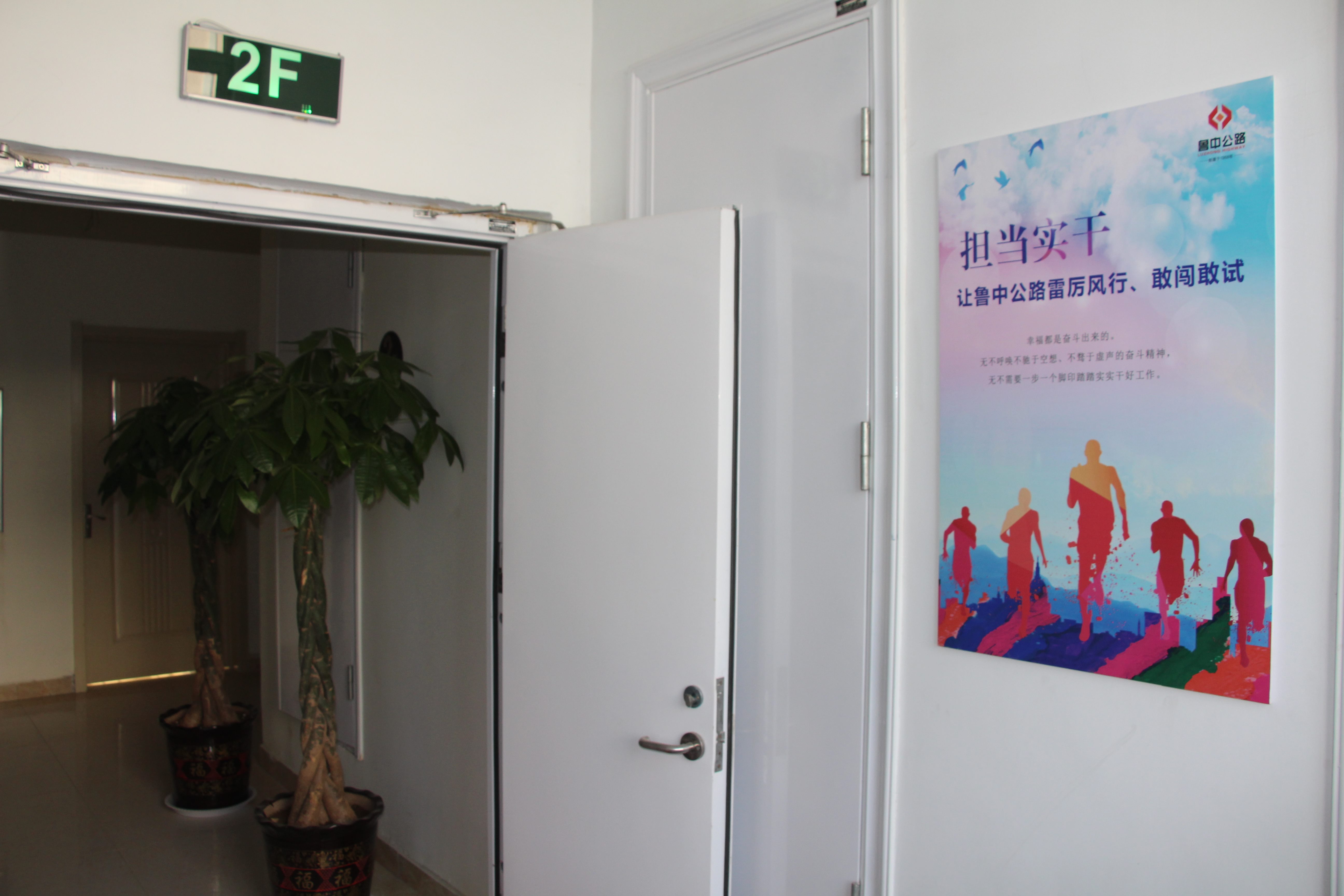 推開(kāi)項(xiàng)目部大門,進(jìn)入一樓大廳內(nèi),首先映入眼簾的是魯中公路標(biāo)志及文化標(biāo)語(yǔ)。