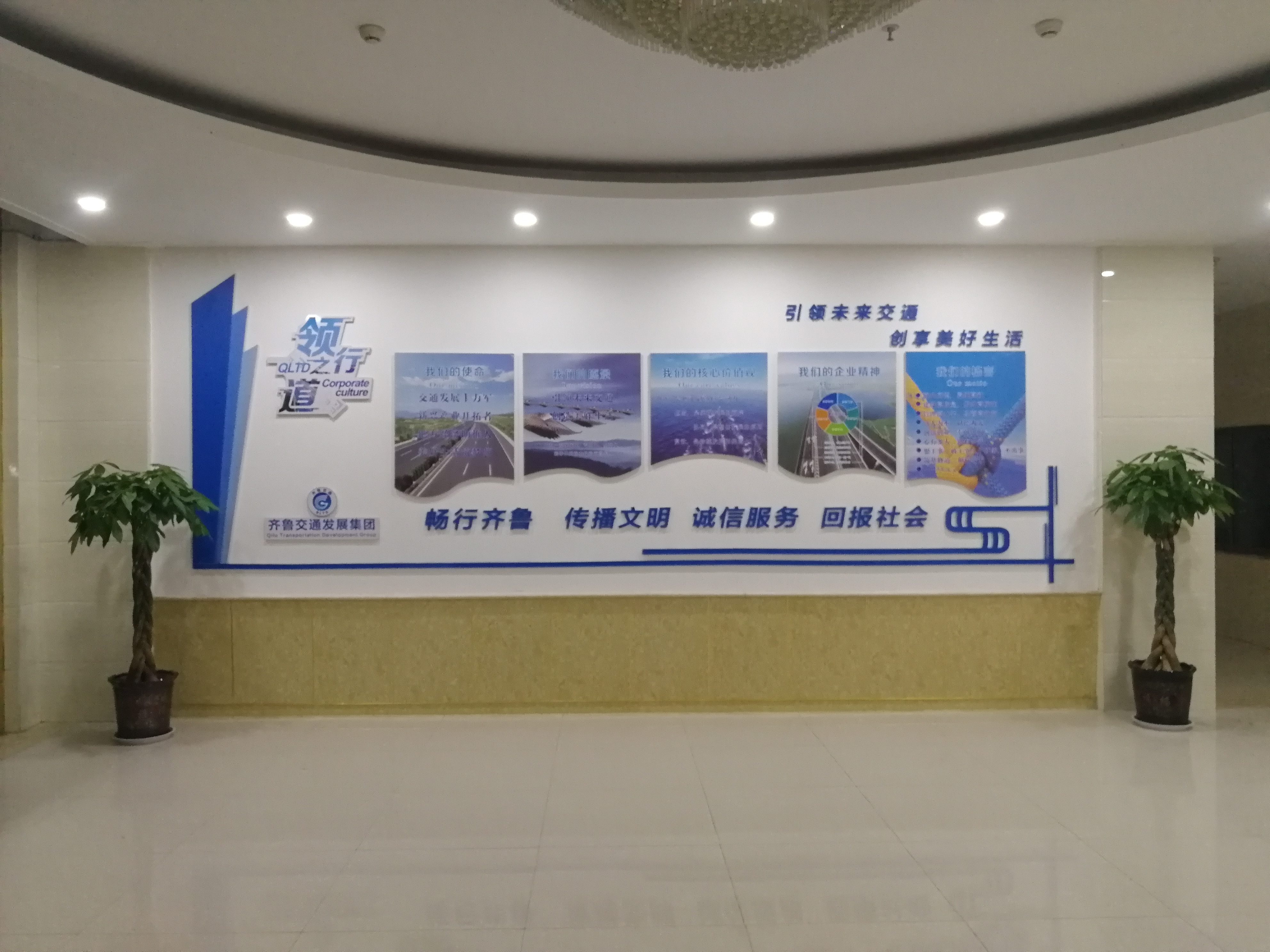 與休息室對(duì)側(cè)方位的是齊魯交通企業(yè)文化墻。