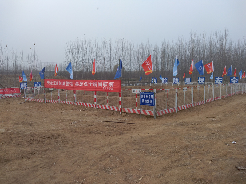 基坑開挖后清除挖出土石方整平四周工作場地,安裝架桿作骨架的基坑護欄
