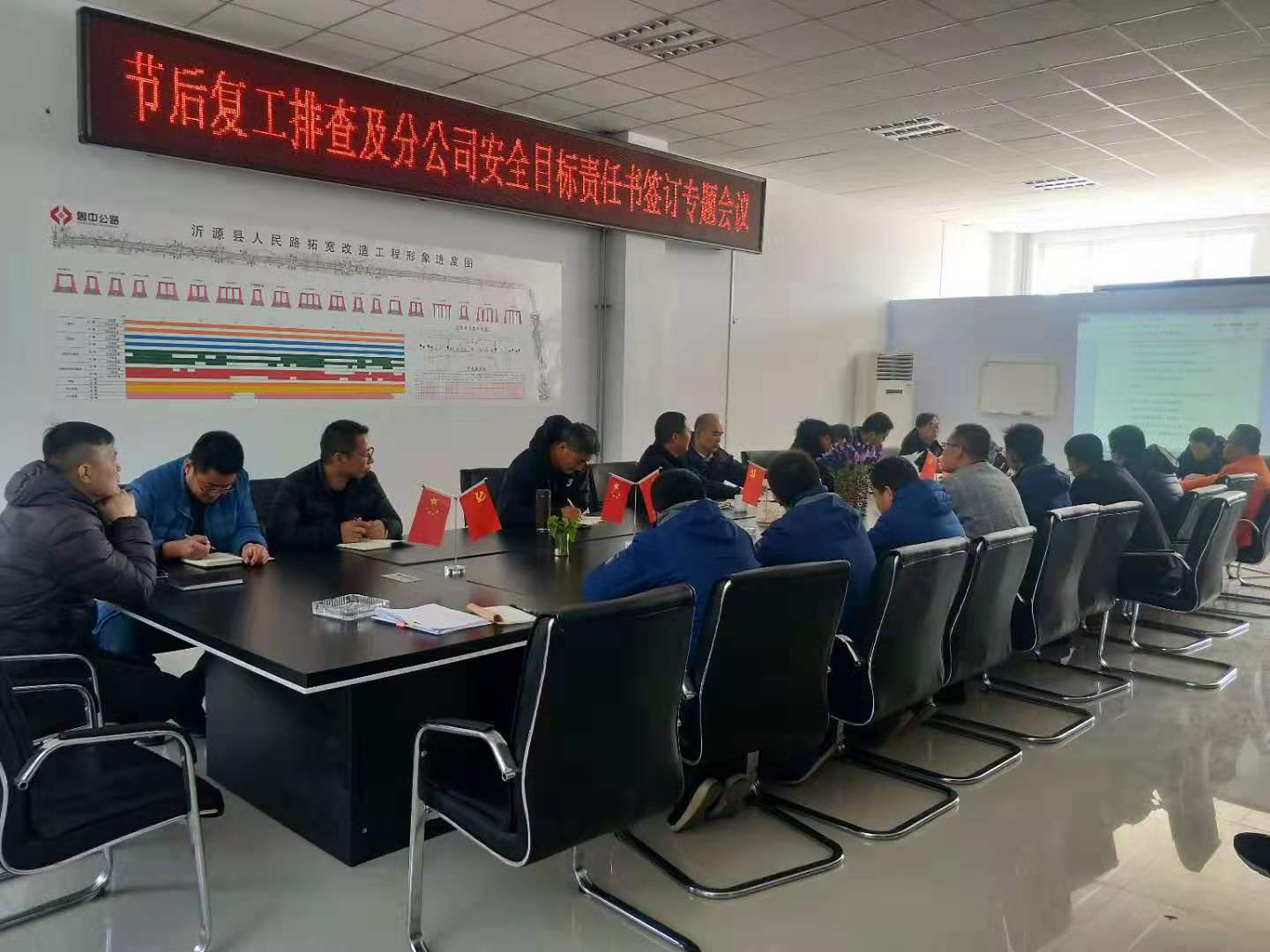 會議中首先養(yǎng)護分公司經(jīng)理王峰針對2018年安全生產(chǎn)工作及2019年主要的安全工作采取的措施要求進行了總結(jié)匯報,接著工程管理部車經(jīng)理對2018年公司總體安全事故及獎罰進行了通報,邱工,王工分別針對租賃設備、施工隊保險、安全費用使用、安全檢查、安全交底及班前會標準、安全員委派、工程質(zhì)量及事故上報等問題做了重點要求跟指示,最后張主席與王經(jīng)理進行了分公司安全目標責任書的簽字儀式。