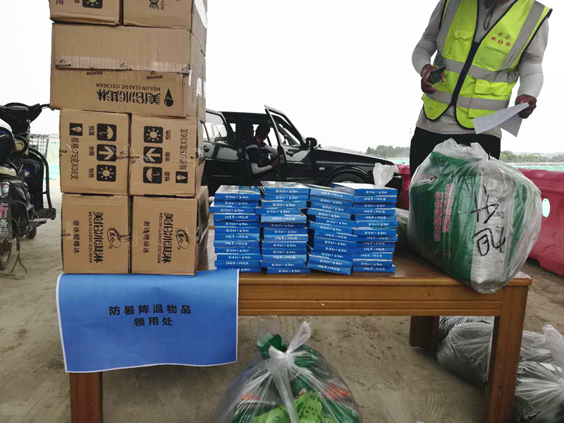 兵馬未動(dòng),糧草先行。為了保證工人們在高溫天氣下能夠安全、放心、舒心工作,項(xiàng)目部想員工之所想,急員工之所急,統(tǒng)籌部署,妥善安排,開展了一系列送清涼活動(dòng),為奮戰(zhàn)在一線的工人們送去了絲絲涼意,獻(xiàn)上了一份誠摯的關(guān)懷。