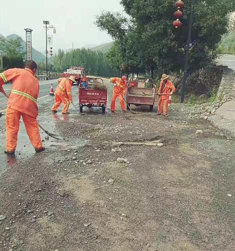 項(xiàng)目組織養(yǎng)護(hù)員及時(shí)對(duì)積水、淤泥、塌方石塊和堵塞物徹底清理;并搶抓晴好天氣,及時(shí)處理因雨水所造成的路面病害,全力保障干線公路安全暢通。