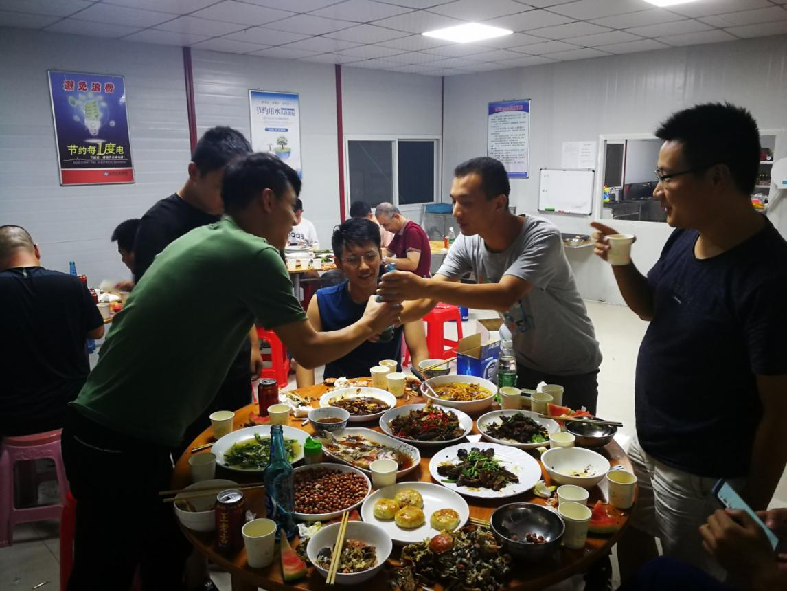 歡度中秋佳節(jié),怎么能少了福利呢,項(xiàng)目部在中秋節(jié)一大早就為我們發(fā)放中秋福利,那精美包裝的月餅,香甜可口的水果,讓我們?cè)谥星锏那宄烤透惺艿搅斯?jié)日到來(lái)的氛圍,感受到項(xiàng)目部大家庭來(lái)的中秋的祝福。中秋月圓之夜,項(xiàng)目部食堂已經(jīng)為我們準(zhǔn)備的豐盛的中秋晚宴,大家共聚一堂,今晚沒(méi)有領(lǐng)導(dǎo)上下級(jí)之間的束縛,相聚一堂,我們都是朋友,舉起酒杯,我們都是家人,我們?cè)谶@團(tuán)聚的日子里,我們一起碰杯,祝福我們各位同事節(jié)日快樂(lè),工作順利;祝福我們的家人身體健康,生活幸福;祝福我們的項(xiàng)目一帆風(fēng)順,再創(chuàng)輝煌!