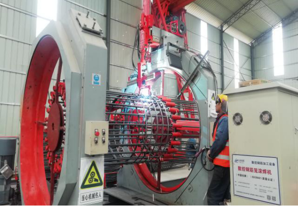 鋼筋籠滾焊機(jī)配備機(jī)器人焊臂和鐓切套絲流水線智能設(shè)備