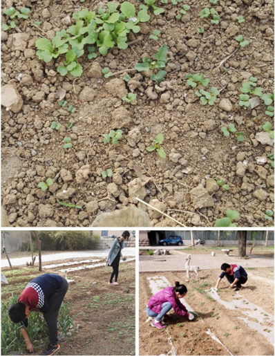 到了監(jiān)理處,看到院子里確實不少草也挺高了,還拿著大剪刀剪了剪拔高的草,不錯,還挺好用的。沒一會監(jiān)理處的人來了,領(lǐng)著我們?nèi)ズ笤海笤菏且黄藞@子,原來是拔菜地里的草,大剪子是用不到了。人家告訴我們怎么拔草。我蹲下看著綠油油的菜或者草,傻傻分不清楚,人家說這是黃瓜秧苗,那個就是草,可我看著咋都覺著一個樣。突然想起老公之前說,你們城市奧特曼是體會不到我們農(nóng)村葫蘆娃在麥地長大的樂趣的,一個囧字涌上心頭,終于分清了黃瓜秧苗和草的區(qū)別。好在我們司機之前去拔過野菜,車上有兩把鏟子,拔草的活頓時輕松了不少,當然再輕松也抵不過工作量的大。