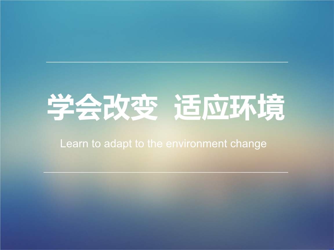 首先適應“改變”是一種接受的過程:變化萬千的環(huán)境中,不可能一成不變。不接受競爭日益激烈的現(xiàn)狀,個人是永遠得不到進步的。接受是一種姿態(tài),是一種個人敢于面對的精神體現(xiàn)。所以適應改變就要先接受改變,接受才可以談及如何面對,這種接受只能是主動的樂觀的,被動的悲觀的接受現(xiàn)狀會寸步難行。