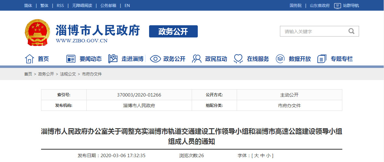 淄博市公布軌道交通和高速公路兩個(gè)建設(shè)領(lǐng)導(dǎo)小組成員