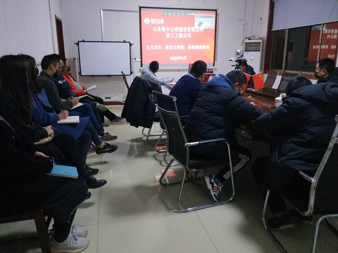 2020年3月8日19時(shí),第三工程公司辦公室、總工辦利用公司視頻會(huì)議系統(tǒng)在公司基地對(duì)公司所屬市政項(xiàng)目和淄川項(xiàng)目人員進(jìn)行公文寫(xiě)作、簽證計(jì)量、影像資料收集等項(xiàng)業(yè)務(wù)培訓(xùn)。培訓(xùn)分別就公文的格式、行文規(guī)則、簽發(fā)、辦理、收發(fā)文管理,撰文規(guī)律技巧、注意事項(xiàng)、容易出現(xiàn)的邏輯錯(cuò)誤,典型病句,向參加學(xué)習(xí)的人員進(jìn)行事例講解。強(qiáng)調(diào)公文寫(xiě)作和小說(shuō)、詩(shī)歌、劇本、散文等文學(xué)藝術(shù)作品的形象思維不同,公文屬于邏輯思維范疇,必須按照實(shí)用、嚴(yán)密、準(zhǔn)確、簡(jiǎn)練的文本要求,行文內(nèi)容力求言簡(jiǎn)意賅,簡(jiǎn)明扼要,表述準(zhǔn)確。
