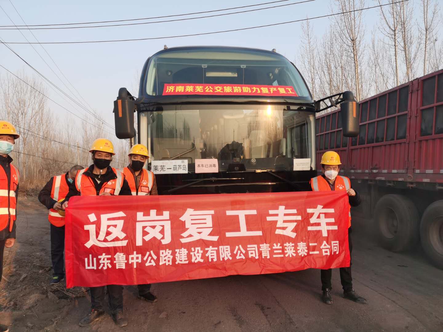 2020年2月27日下午18:00,青蘭項目部首趟由萊蕪區(qū)發(fā)往河北保定的跨省返崗復(fù)工包車,經(jīng)過12小時、1000多公里的長途跋涉,順利返回,在青蘭萊泰七個標(biāo)段中,率先拉開了“點對點”包車返崗復(fù)工的序幕。