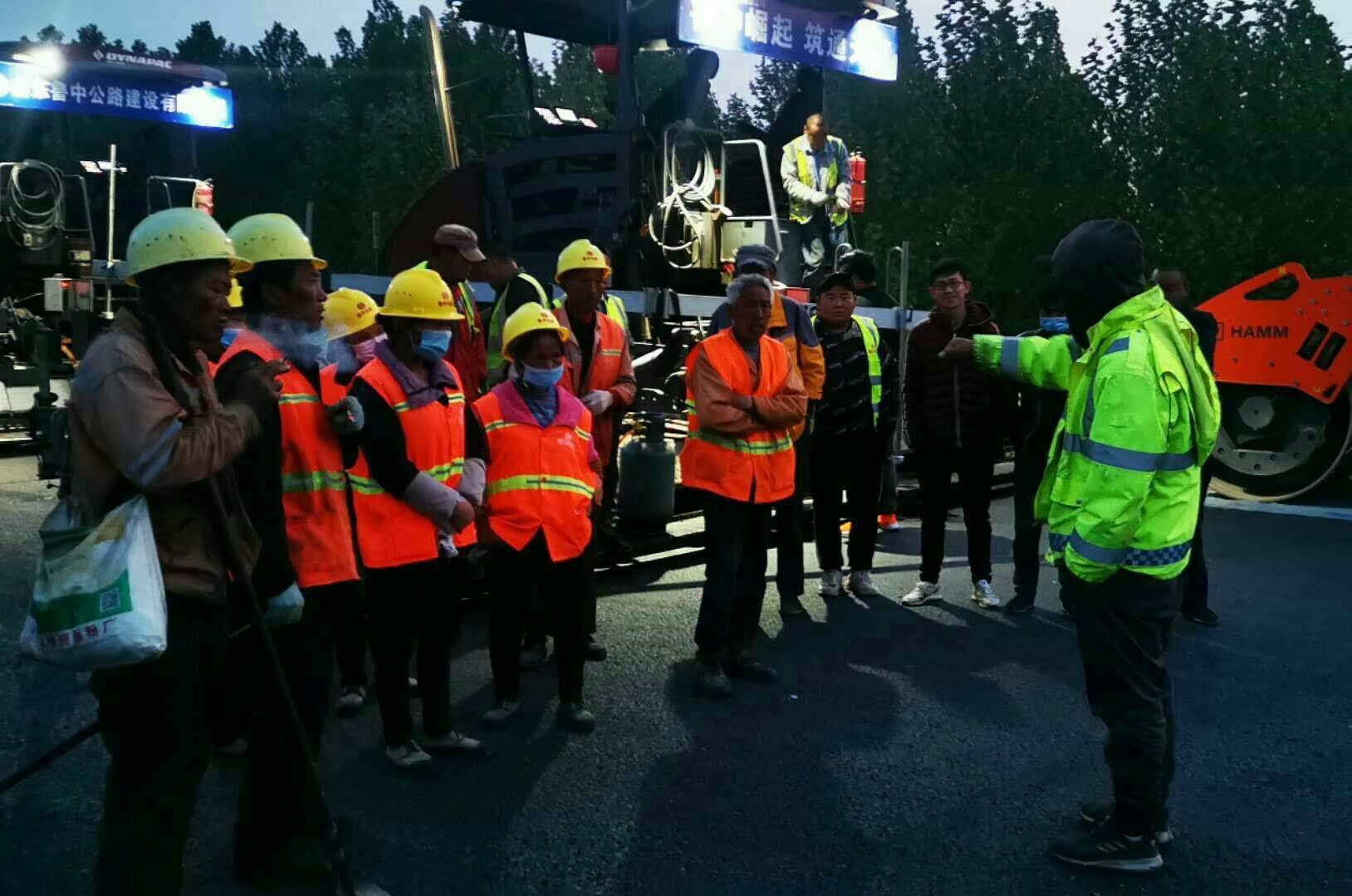 安全生產(chǎn)是永恒的主體,凌晨4:00瀝青拌合站操作工王志成開機(jī)前對(duì)工人做安全技術(shù)交底。