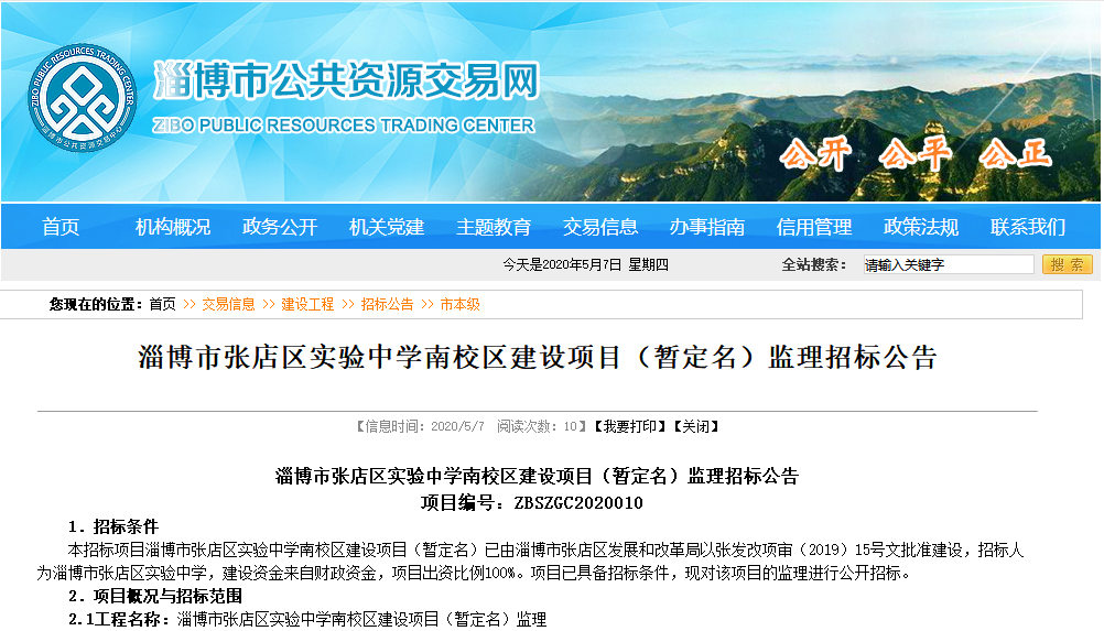 工程名稱:淄博市張店區(qū)實驗中學(xué)南校區(qū)建設(shè)項目(暫定名)監(jiān)理