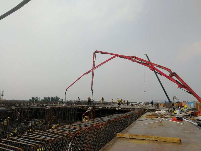 本次澆筑的轉(zhuǎn)體現(xiàn)澆梁長(zhǎng)24米, 整幅橋面寬30.7米。箱梁采用三向預(yù)應(yīng)力體系,大懸臂單箱三室斜腹板箱型截面,設(shè)計(jì)混凝土方量739立方;2#節(jié)段的施工完成為剩余3#節(jié)段的施工提供了保障,目前7月份轉(zhuǎn)體計(jì)劃已上報(bào)濟(jì)南局集團(tuán)公司審批,本次2#節(jié)段的順利澆筑,為后續(xù)7月份轉(zhuǎn)體施工奠定了基礎(chǔ)。