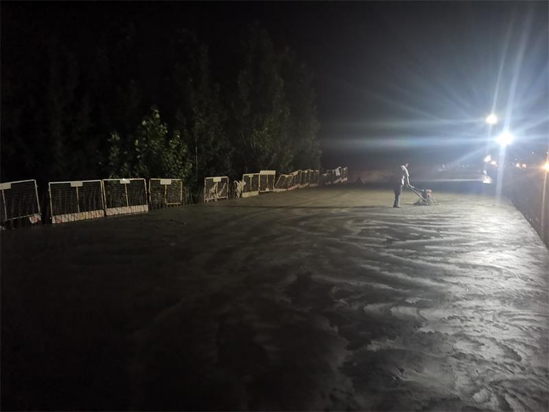 在橋面鋪裝施工過程中,新寧項(xiàng)目部精心組織、超前謀劃,從原材料的選用到鋪裝前橋面面板清理、鋼筋網(wǎng)片鋪設(shè)、混凝土澆筑平整等,每道工序嚴(yán)格把關(guān),相關(guān)技術(shù)人員全程指導(dǎo)、監(jiān)督、監(jiān)測,對混凝土塌落度及橋面鋪裝層高程、厚度、橫坡度、平整度等各項(xiàng)技術(shù)指標(biāo)進(jìn)行了嚴(yán)格控制,從而保證橋面鋪裝質(zhì)量達(dá)到優(yōu)良標(biāo)準(zhǔn)。
