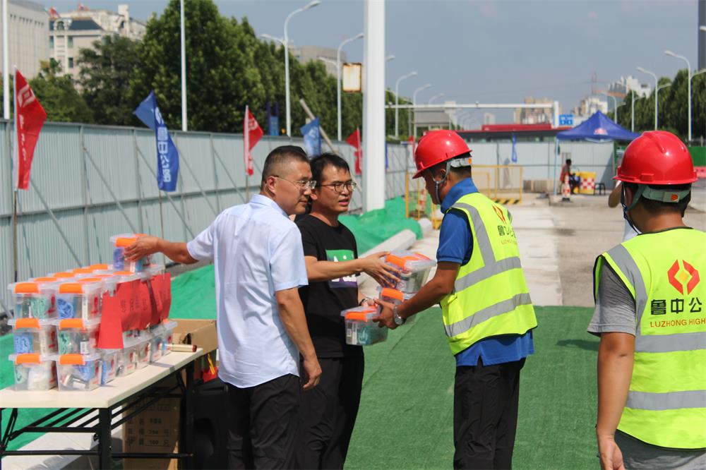 連日來,持續(xù)高溫酷暑天氣,在聯(lián)通路工地上感覺是上烤下烙,魯中公路一線職工不懼酷暑依然堅守崗位,為淄博市政建設(shè)和交通提升改造默默付出辛勞與汗水。魯中公司總經(jīng)理王克輝、第三工程公司經(jīng)理徐良軍、李剛也在施工現(xiàn)場關(guān)注著施工進度與生產(chǎn)安全,特別關(guān)心著高溫下施工人員的健康問題。除了做好進場人員的體溫監(jiān)測登記,在現(xiàn)場臨時休息亭準備了各種防暑降溫的藥物、飲料、小扇子等??吹焦こ桃痪€各施工單位不辭辛勞為工程建設(shè)無私奉獻,市城建重點工程指揮部市政處史清峰處長、市政處科長王鵬、辦公室主任秦靜一行攜帶慰問品來到工地給大家“送清涼”來了。要求各項目建設(shè)單位,保證安全生產(chǎn),又要注意身體健康,要把服務(wù)和保障職工健康作為工作重點,進一步推動落實關(guān)懷職工政策,幫助職工安全度夏、清涼度夏。