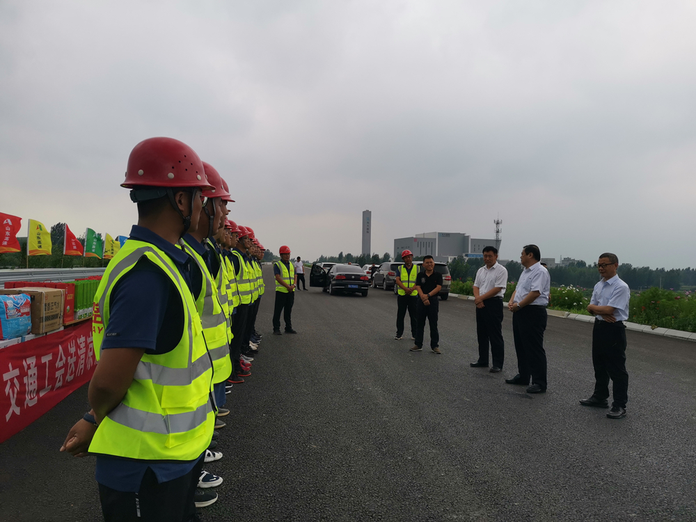 在青蘭二標(biāo)段汶河路分離立交現(xiàn)場,王迎軍詳細(xì)了解了項(xiàng)目進(jìn)展情況,并傳達(dá)省交通廳對青蘭萊泰一線員工的關(guān)懷和問候,對青蘭項(xiàng)目部面對新冠疫情和當(dāng)前高溫多雨天氣等種種不利因素,在開工最晚、工期最緊的情況下,始終堅(jiān)持實(shí)現(xiàn)2020年底通車目標(biāo)不動搖,不斷提高政治站位,科學(xué)組織,精心安排,在質(zhì)量、安全、環(huán)保、進(jìn)度各方面始終保持全線領(lǐng)跑地位給予了高度評價。對全體參建人員積極作為,主動作為,敢想敢干,敢闖敢拼的工作作風(fēng)給予充分肯定。