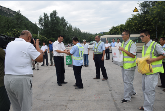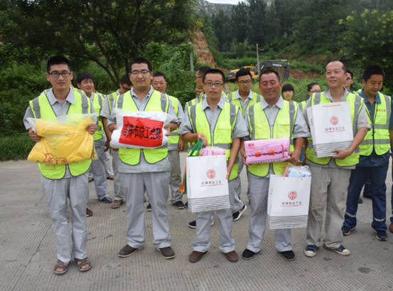 最后,劉蓬、翟乃利、王興等領(lǐng)導(dǎo)親自向一線施工人員發(fā)放各類防暑降溫物品,將清涼送到每位員工心中。