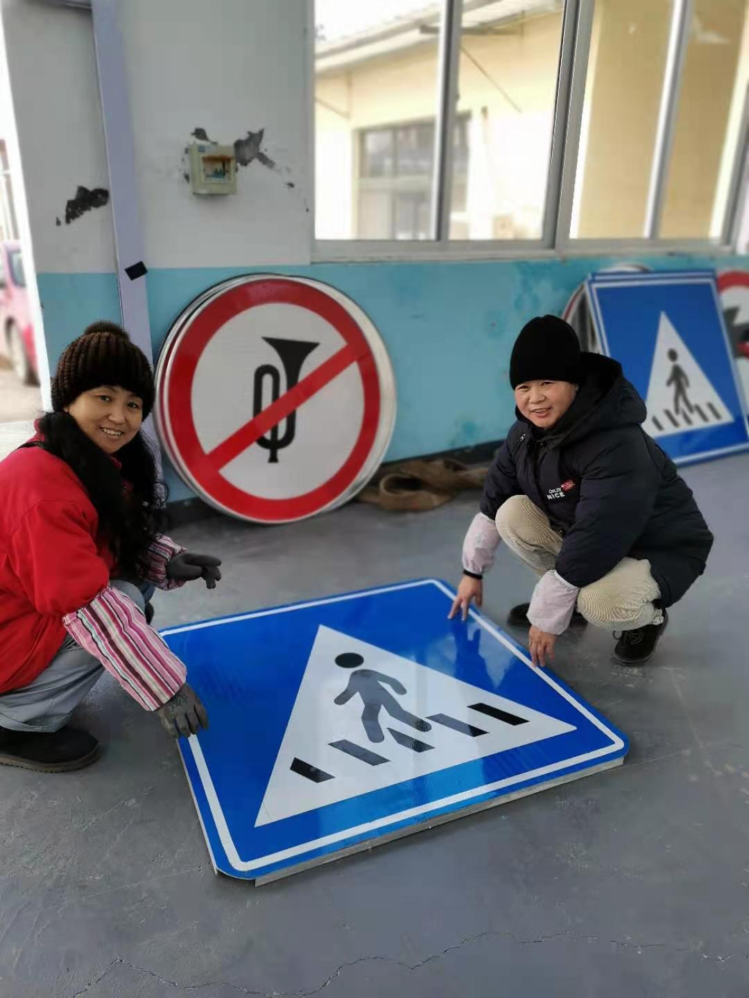 緊張忙碌中我們度過了半個(gè)月的時(shí)間,我們接到為G2京滬項(xiàng)目制作36個(gè)標(biāo)志牌的任務(wù),且工期只有三天。一般情況下36個(gè)標(biāo)志牌連下料,帶鉚接,刻膜,撕膜,貼膜等6個(gè)人需要一周左右的工作時(shí)間,而我們現(xiàn)在人力、時(shí)間都被壓縮,這是一項(xiàng)極度挑戰(zhàn)的工作任務(wù)。接到任務(wù)后,公司經(jīng)理連夜從新寧項(xiàng)目趕回來,帶領(lǐng)我們幾個(gè)完成幾個(gè)超大牌子鉚接工作,大家忙碌完了,才發(fā)現(xiàn)已是夜里十點(diǎn)多了。領(lǐng)導(dǎo)又針對(duì)標(biāo)志牌制作所用品牌、反光膜各種類及色等為我們強(qiáng)調(diào)了一下,立即返回了新寧項(xiàng)目工地。第二天一早,我們?nèi)颂崆皝淼杰囬g一刻不停地把沒鉚接完的牌子鉚接完。第三天我們總結(jié)工作經(jīng)驗(yàn),再次進(jìn)行分工,有下底膜貼的,有刻字撕膜的,最后再一起貼內(nèi)容。臨近下班,我們終于把這36個(gè)牌子粘貼完成了。為了準(zhǔn)時(shí)把標(biāo)志牌運(yùn)送到G2項(xiàng)目,我們?nèi)藦膫}庫把螺絲、螺帽等配件搬運(yùn)到貨車位置,“一、二、三……”我們喊著口號(hào),終于把所有袋子搬上了貨車。目送貨車出了大門,我們?nèi)肆飨铝讼矏偟臏I水擁抱在一起。