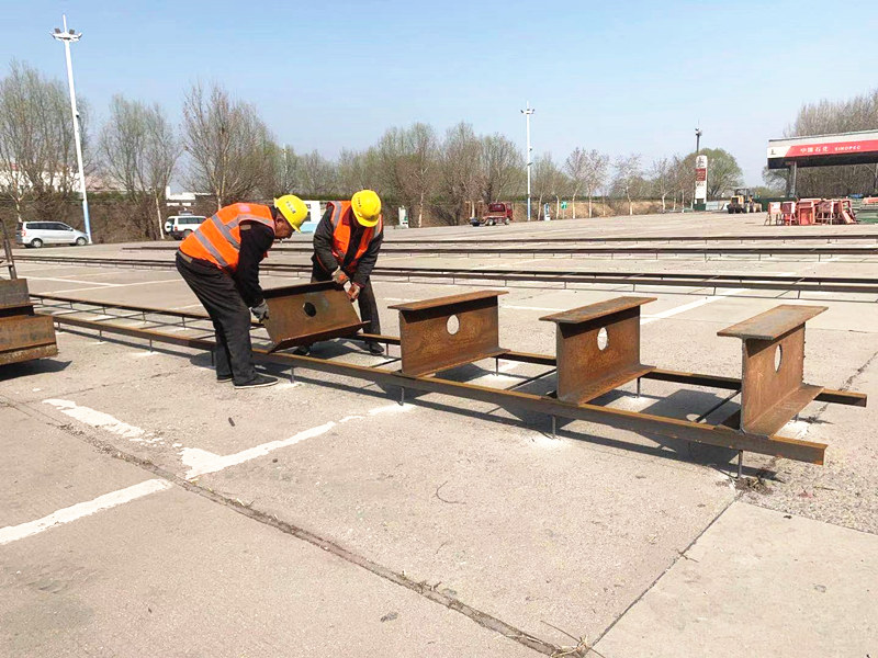 預(yù)制場工字鋼和龍門道軌進(jìn)場卸車安裝