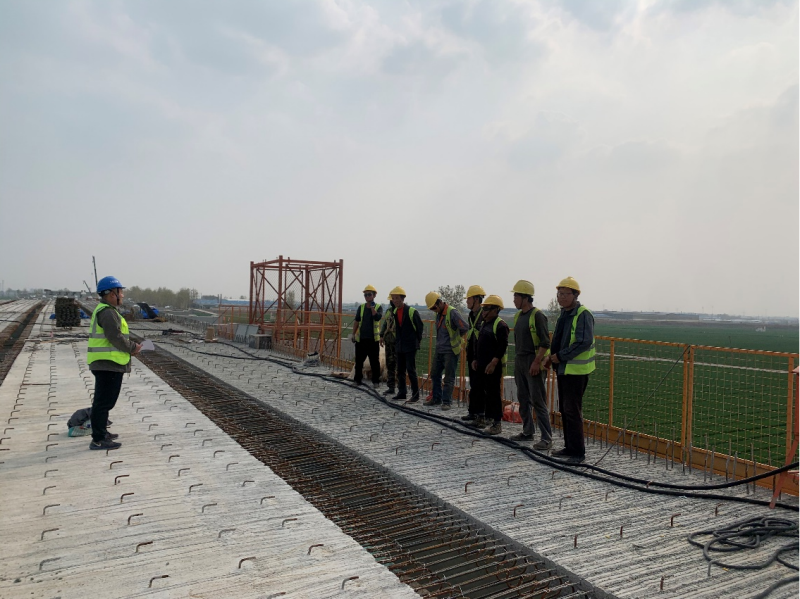 目前,第一項(xiàng)目部橋梁施工由樁基轉(zhuǎn)戰(zhàn)至橋面系施工,高空作業(yè)驟然增加,安全隱患也相應(yīng)的凸顯出來。安全部及早部署,提前安排,對橋梁橋面施工的隊(duì)伍人員做了一次全面覆蓋,不遺漏一人的安全技術(shù)交底培訓(xùn)。除了反復(fù)強(qiáng)調(diào)的反光衣、安全帽的正確穿戴,還加強(qiáng)了對高空作業(yè)人員安全帶的正確使用培訓(xùn);針對吊裝作業(yè)中容易出現(xiàn)的違規(guī)操作造成的安全事故對特種作業(yè)人員進(jìn)行了現(xiàn)場教育學(xué)習(xí);對高空作業(yè)高處墜落事故的防范和應(yīng)急處置進(jìn)行了集中培訓(xùn)。