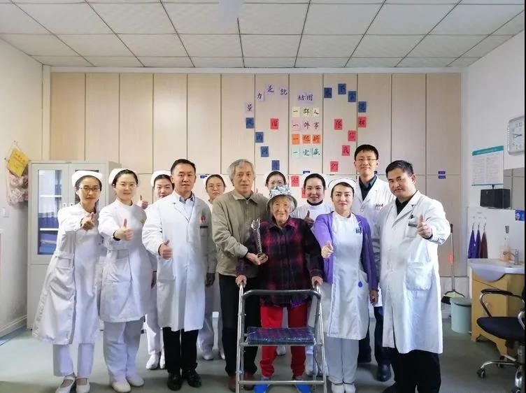 回到病房,奶奶吸上氧,帶上監(jiān)測(cè)設(shè)備,我的奶奶一切指標(biāo)都正常,鄰床的阿姨手術(shù)后都狀況頻出,可我的奶奶卻安祥如初,奶奶還聲音洪亮的和護(hù)士說(shuō):“謝謝你們,我沒(méi)事,你們快去休息吧。”術(shù)后第二天,引流管拔除后,奶奶就在醫(yī)生和護(hù)士的陪同下嘗試下床站立行走了。從此,奶奶每天堅(jiān)持下床行走,還央求著醫(yī)生護(hù)士,讓她盡量多走一段路。奶奶用她的實(shí)際行動(dòng)感染了身邊的醫(yī)護(hù)人員,其他科室的醫(yī)生也都來(lái)探望這位堅(jiān)強(qiáng)的老人,他們還自發(fā)給奶奶做了個(gè)獎(jiǎng)杯,祝我奶奶健康長(zhǎng)壽?!遏斨谐繄?bào)》得知消息,也在第一時(shí)間采訪了我奶奶,就這樣,一傳十,十傳百,原本傳統(tǒng)中本命年渡劫的奶奶卻成了淄博市醫(yī)療系統(tǒng)當(dāng)紅的明星。