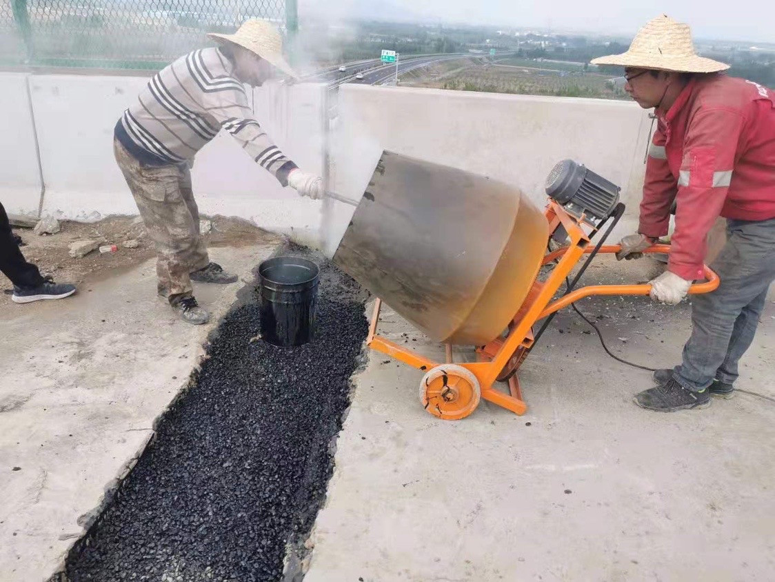 在經過有序的準備之后,現(xiàn)場施工人員充滿干勁于5月4日上午7:00整,對最后兩道天橋TST伸縮縫正式開始施工?,F(xiàn)場切割機、TST混合料攪拌鍋等施工設備緊密配合,施工人員嚴格按照工藝要求進行施工,做到施工標準化、規(guī)范化。