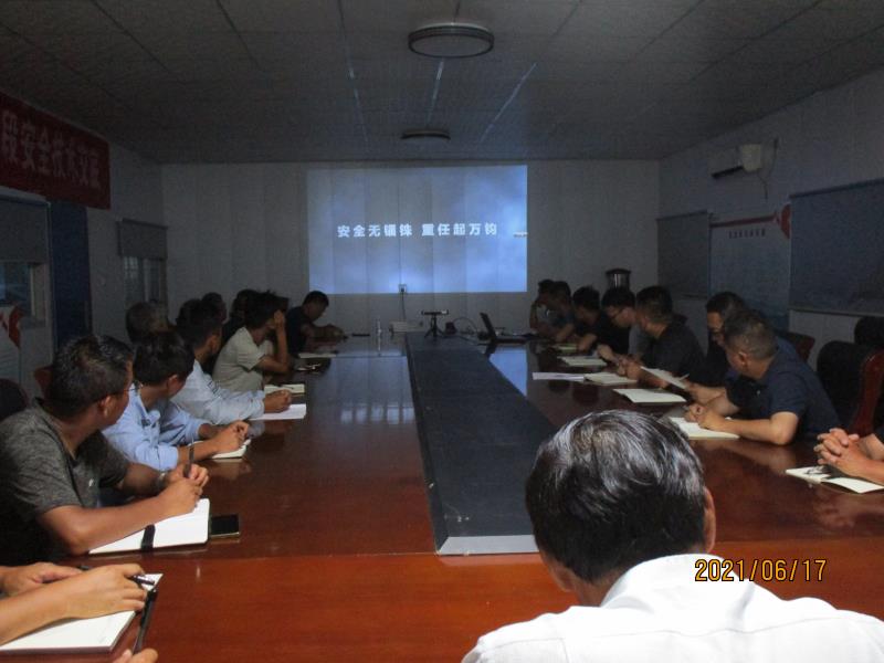 活動(dòng)開始,由項(xiàng)目安全負(fù)責(zé)人圍繞2021年安全生產(chǎn)月的主題“落實(shí)安全責(zé)任 推動(dòng)安全發(fā)展”講解了安全相關(guān)知識(shí),從落實(shí)安全生產(chǎn)責(zé)任五個(gè)必須(必須落實(shí)安全生產(chǎn)“一崗雙責(zé)”、必須落實(shí)安全生產(chǎn)組織領(lǐng)導(dǎo)機(jī)構(gòu)等)開始講起。重點(diǎn)講解了勞動(dòng)防護(hù)用品10個(gè)防護(hù),如頭部防護(hù)安全帽、眼面部防護(hù)護(hù)目鏡等。簡(jiǎn)短的安全培訓(xùn)教育后,開始觀看《生命至上,警鐘長(zhǎng)鳴》的安全生產(chǎn)警示教育片。會(huì)議最后,項(xiàng)目部經(jīng)理和分管安全副經(jīng)理對(duì)此次培訓(xùn)教育、觀影活動(dòng)做總結(jié),強(qiáng)調(diào)安全意識(shí)必然要貫穿施工生產(chǎn)的任一環(huán)節(jié),任何行為都不能逾越安全生產(chǎn)這條紅線。
