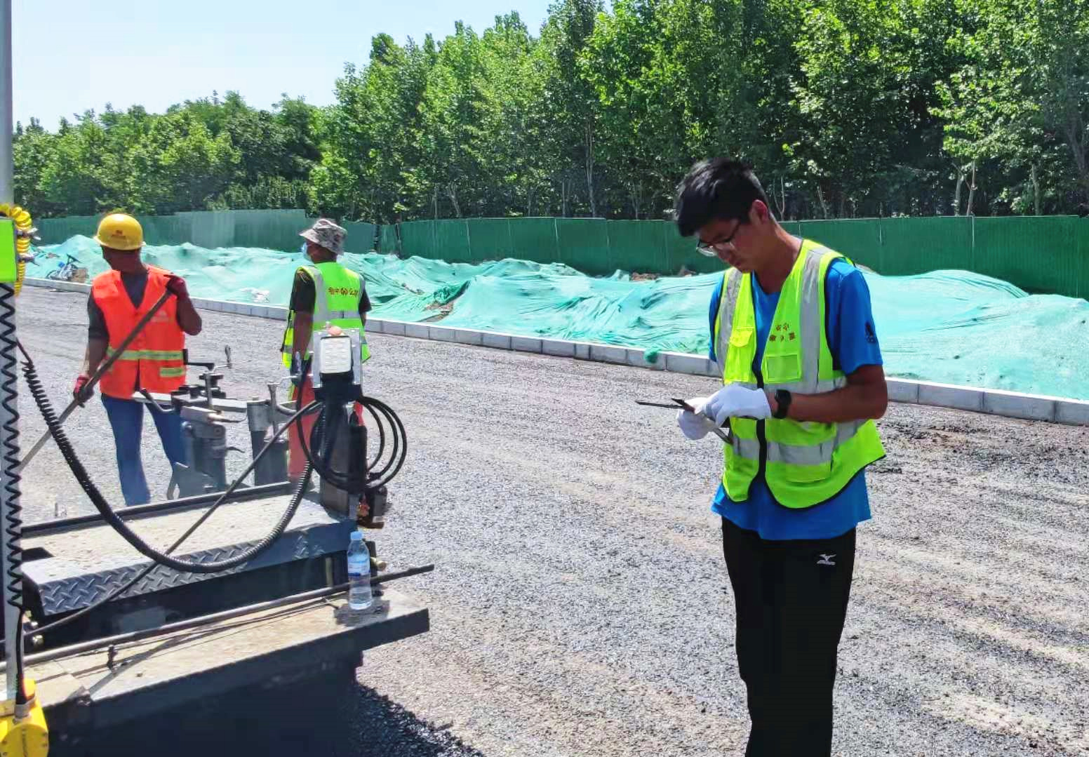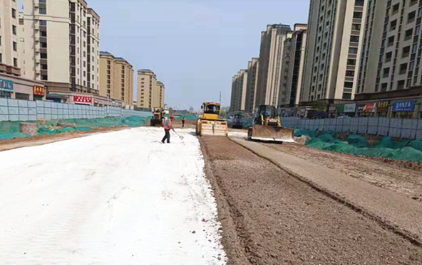考工路水泥穩(wěn)定碎石基層施工現(xiàn)場