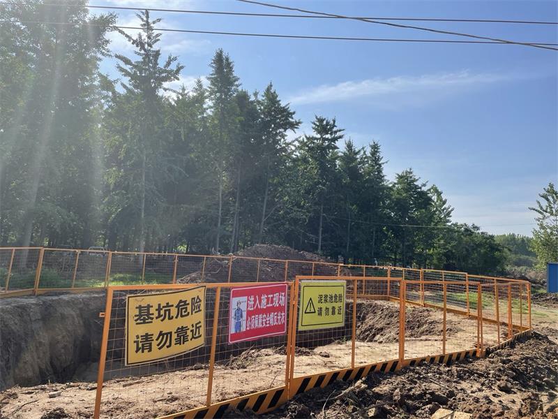 項(xiàng)目建設(shè)初期,為減少施工對(duì)社會(huì)人員和車輛的影響,安全部在線路遠(yuǎn)端和主要路口設(shè)置施工提示,并聯(lián)系協(xié)調(diào)沿線村莊,發(fā)放村民告知書,對(duì)因施工帶來的不便得到對(duì)方的理解和支持。建設(shè)過程中,項(xiàng)目部始終崩緊安全弦,臨路基坑開挖部位安裝鋼板樁加固邊坡,防止邊坡塌陷,保證過往車輛及沿線居民的出行安全。對(duì)施工基坑和構(gòu)筑物做好圍擋及安全警示,設(shè)置專職安全員,對(duì)施工區(qū)域進(jìn)行嚴(yán)格把控。目前,項(xiàng)目部設(shè)有專職安全管理人員六名,投入安全圍擋五百余片、反光錐一千余個(gè)、施工指示牌一百余個(gè),為現(xiàn)場施工提供了堅(jiān)實(shí)的安全保障。