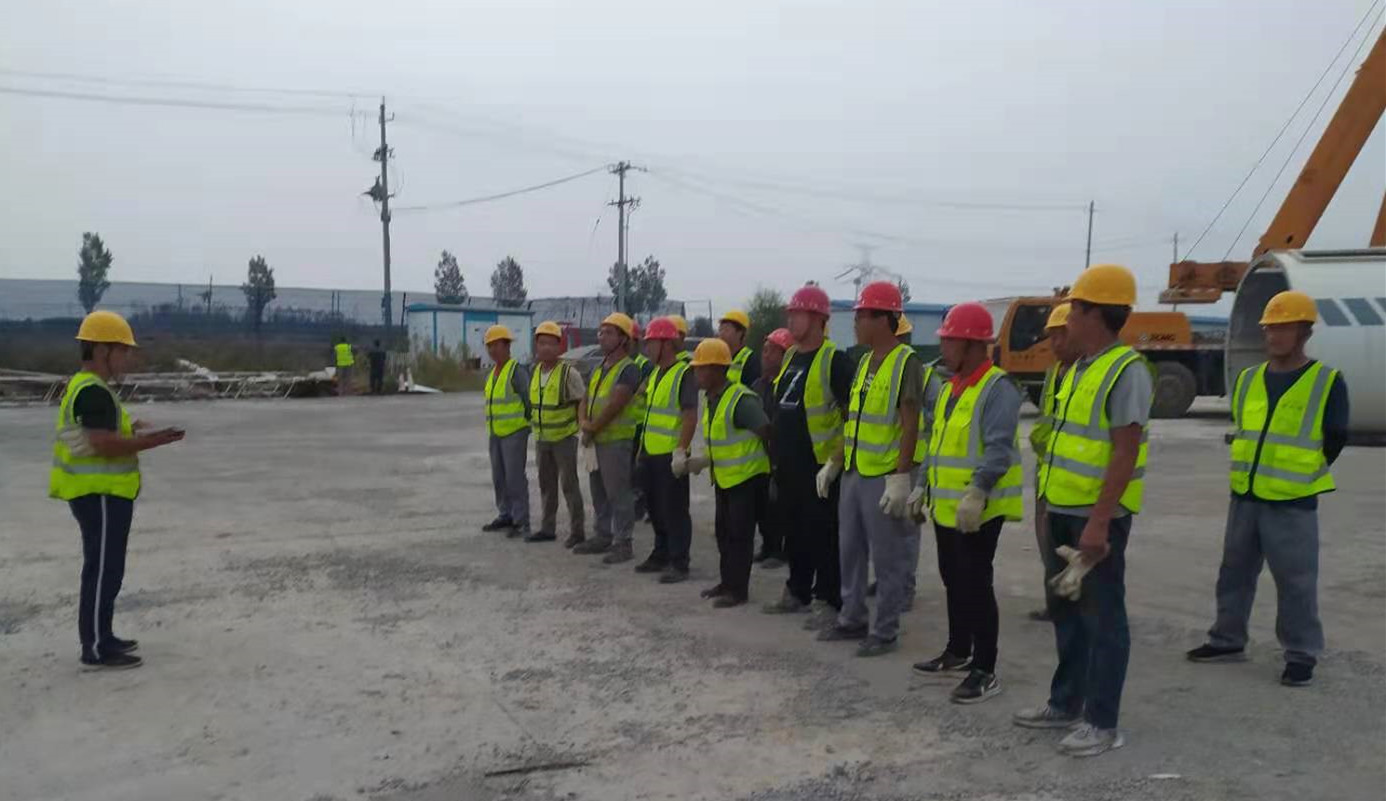 伴隨著一陣陣匆匆的腳步聲,人群中一聲令下,拆卸隊伍快速靠攏,開始了他們一天中的第一項工作內(nèi)容,班前安全交底。交底內(nèi)容繁雜多樣,涉及登高、電器等各個工序,為了有一個良好的交底效果,更為了不影響拆卸,待集體交底完成,確認(rèn)沒有問題后,再由有實際操作經(jīng)驗的老師傅帶隊開始工作。偶爾覺得累了,找個安全的空地,就地休息,其他人員也很有默契地加快手中的工作,休息好了自動歸隊,爭取不輸給其他隊伍,各隊伍你追我趕,爭分奪秒,與時間賽跑,眼中只有工作,工地現(xiàn)場處處能看到工友們忙碌的背影。
