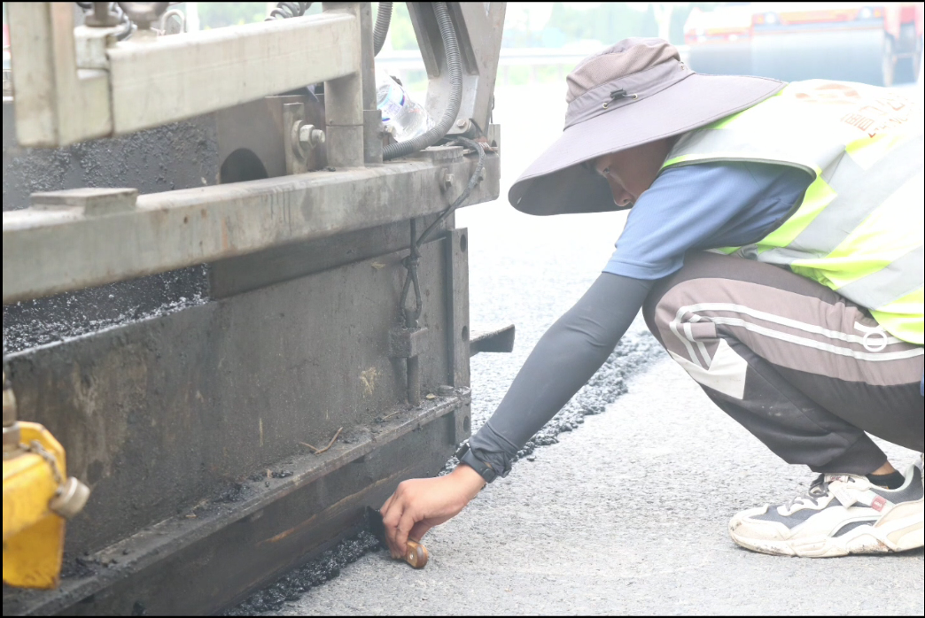 還記得我初次到G205時,正值七月份,是一年中最炎熱的時候,又是項(xiàng)目正大干的時候,直到現(xiàn)在回想起來依然能感覺到那種酷熱難當(dāng)。看到正在進(jìn)行瀝青攤鋪,我邁步向?yàn)r青攤鋪車走去,感覺眼前的空間都在扭曲。再看身邊的每個施工人員,臉上都有豆大的汗珠不斷地掉落。施工人員告訴我,瀝青的出廠溫度達(dá)到180℃左右,到達(dá)路面時溫度也有120℃左右。頭頂是炎炎烈日,腳下是滾燙的瀝青,看著到處都是忙碌的身影,我對他們的敬佩又重了幾分。