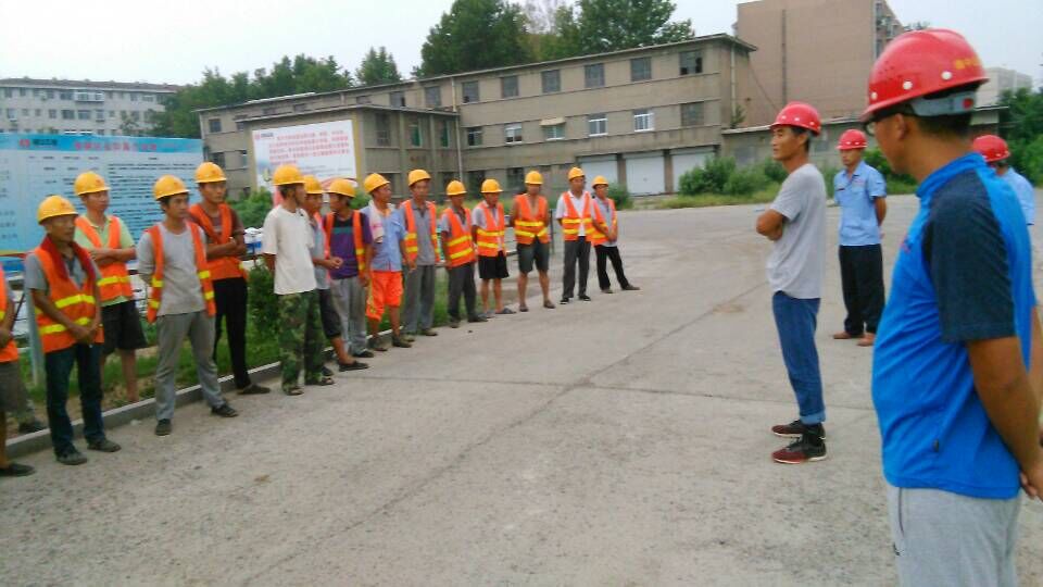 項(xiàng)目經(jīng)理張若棟在施工現(xiàn)場(chǎng)主持安全交底會(huì)議