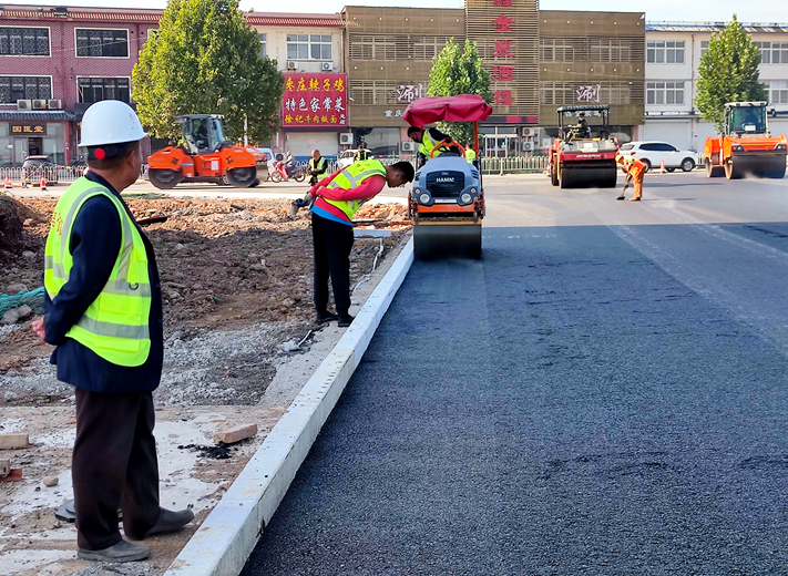 沿河?xùn)|路瀝青上面層完成施工任務(wù)