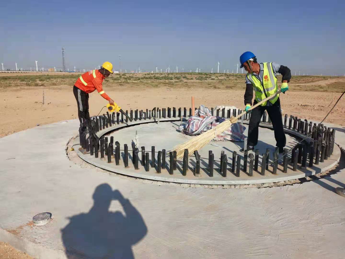 寧夏風(fēng)電項(xiàng)目對(duì)每個(gè)參建者都是新挑戰(zhàn),空曠的施工場(chǎng)地、強(qiáng)烈的紫外線照射、新的施工工藝等都為所有參建者上了一課,需要保持十二分的戰(zhàn)斗狀態(tài),做好每一細(xì)節(jié)的工作。在施工過(guò)程中我們嚴(yán)格按照施工圖及施工規(guī)范的要求進(jìn)行作業(yè),對(duì)施工現(xiàn)場(chǎng)遇到的各種問(wèn)題,及時(shí)開(kāi)會(huì)與項(xiàng)目其他人溝通確定方案予以解決,對(duì)自檢過(guò)程中發(fā)現(xiàn)的問(wèn)題及時(shí)整改完善。