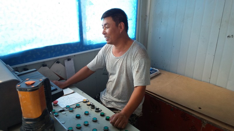 橋隧分公司拌合站站長高峰堅(jiān)守在拌合站操作室