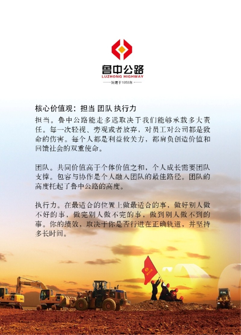 未來的路還很遠(yuǎn),但我們的信念不變,員工的努力,妻子的支持,孩子的爭氣成就了我們的底氣。我們心中都有一個夢,一個溫暖的,逐漸在清晰走來的夢??释谖覀冞@一代人手中,通過努力打造一個受人尊重的,充滿生機(jī)與活力的魯中公路。