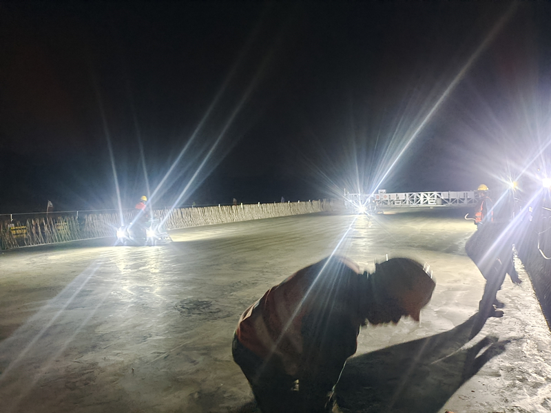 此次鋪裝位于北京路橋分離立交左幅第2聯(lián),全長(zhǎng)120米。第五區(qū)域項(xiàng)目部積極踐行“質(zhì)量山高”“創(chuàng)新山高”建設(shè),在施工過(guò)程中采用“四新”工藝, 首次推廣使用激光攤鋪機(jī)進(jìn)行橋面鋪裝攤鋪?zhàn)鳂I(yè),在提高精準(zhǔn)度、提升攤鋪壓實(shí)及振搗提漿效果的同時(shí),該設(shè)備還具有鋪裝成本低、一機(jī)多用、遙控操作安全等優(yōu)勢(shì),在大長(zhǎng)度連續(xù)攤鋪情況下,提升平整度50%以上。
